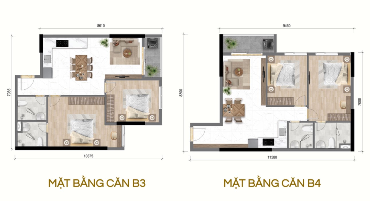 - Căn hộ 3 phòng ngủ: 72–99 m² – không gian rộng rãi, dành cho gia đình nhiều thế hệ hoặc khách hàng muốn ở lâu dài với tiêu chuẩn sống thoải mái hơn.