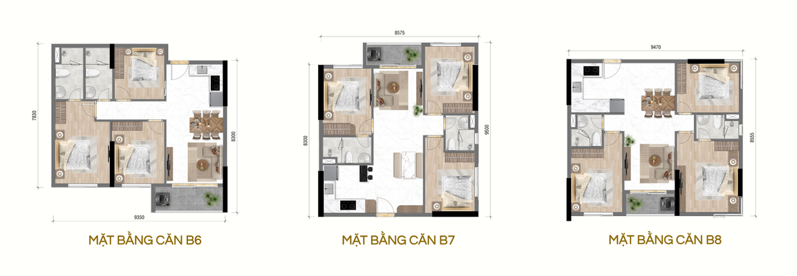 - Căn hộ 3 phòng ngủ: 72–99 m² – không gian rộng rãi, dành cho gia đình nhiều thế hệ hoặc khách hàng muốn ở lâu dài với tiêu chuẩn sống thoải mái hơn.